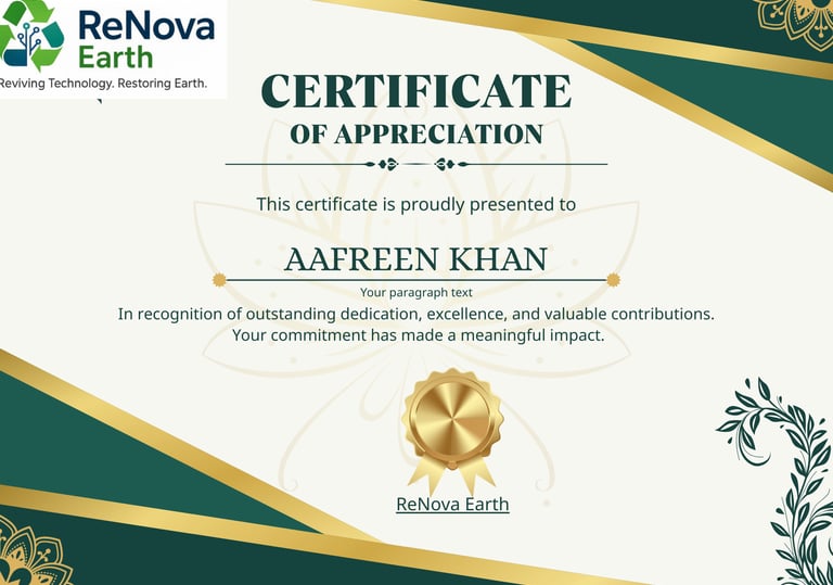 At renova earth, we make e-waste recycling simple and rewarding for everyone in the UAE.